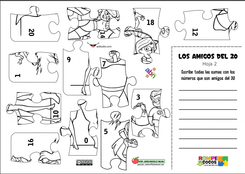 Buscamos los amigos del 20 de una forma divertida, a través de puzles en los que descubriremos la imagen escondida si resolvemos bien las operaciones.