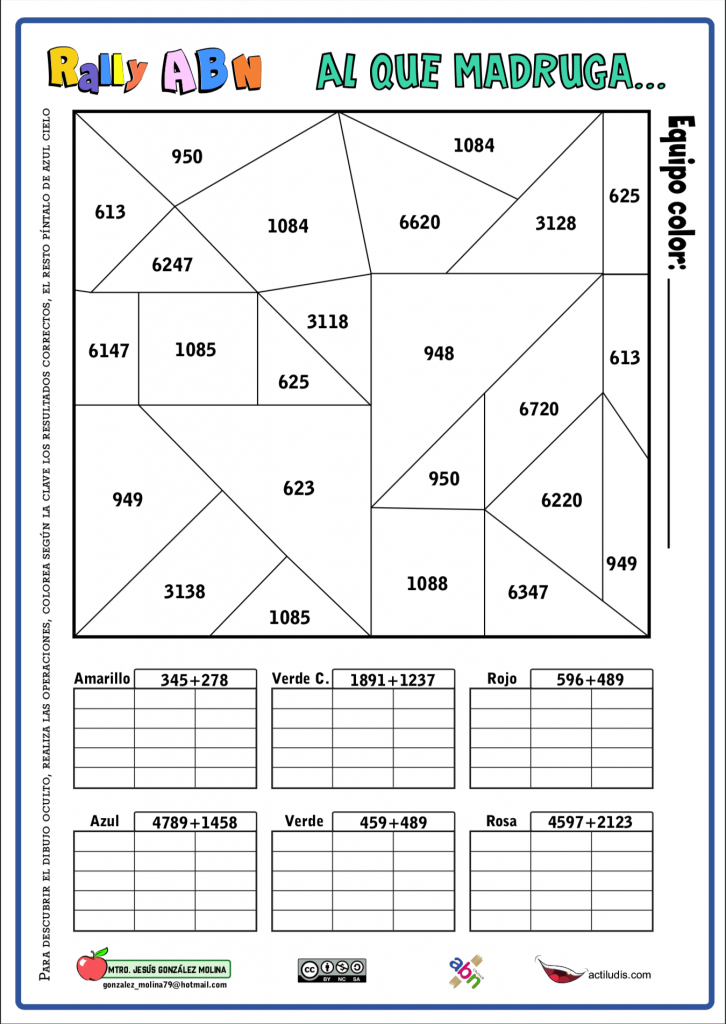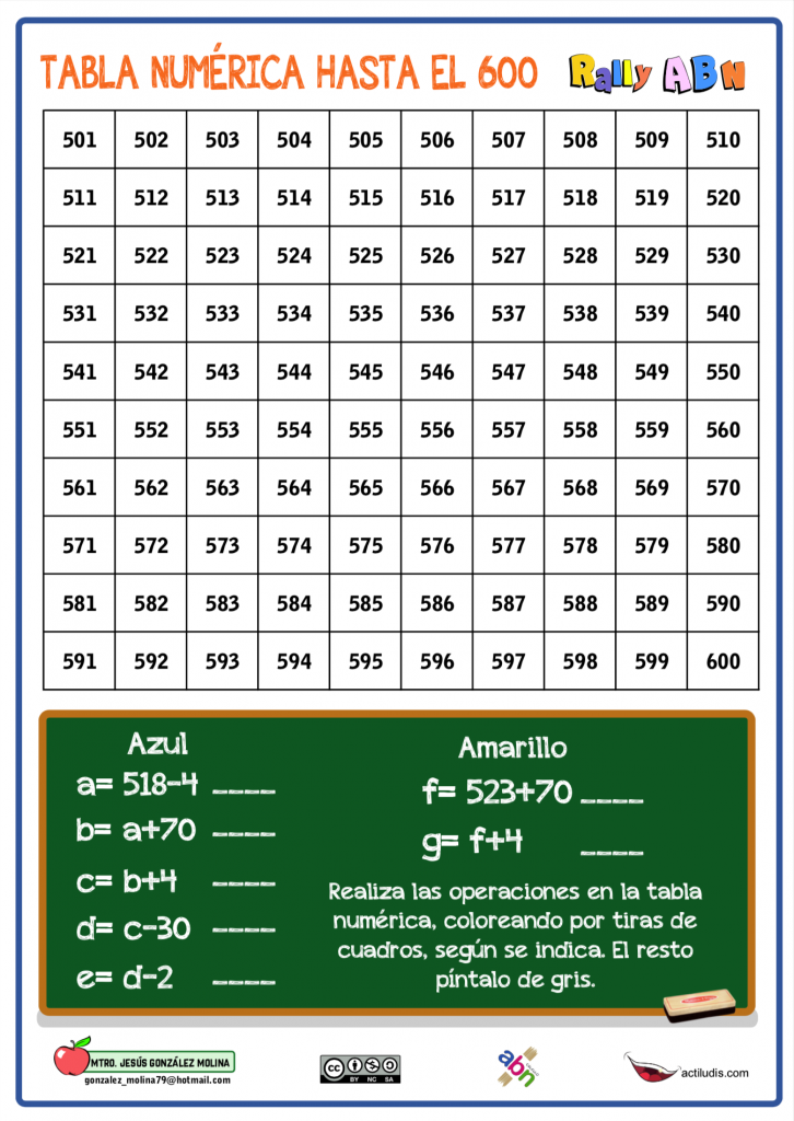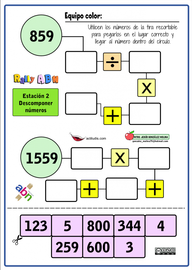 Para su desarrollo elaboró para cada una de las cinco estaciones, o etapas, de que constó el Rally ABN materiales con los que trabajar el cálculo en una tabla numérica, la descomposición, suma y resta ABN. Las actividades estaban dirigidas para el profesorado del curso y el nivel de las mismas las pueden realizar alumnado del Segundo Ciclo de Primaria.
