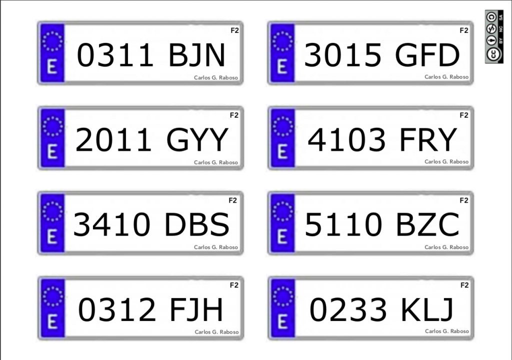 Con este nuevo material en el que vamos a encontrar diversas matrículas de coches podemos realizar varios juegos que nos permitirán ejercitar el cálculo mental, a un nivel del Primer Ciclo de Primaria, pero además como las matrículas tienen letras, con ellas, también podremos trabajar formación de palabra o frases.