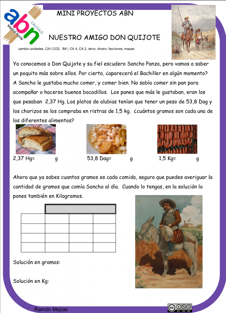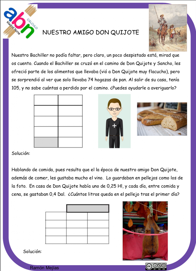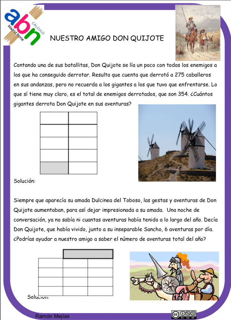 Nuevo mini proyecto realizado por Ramón Mejías González maestro en el CEIP “Bachiller Alonso López” en Alcobendas (Madrid) con el que trabajar gamificación y resolución de problemas con metodología ABN, para que luego digan que es difícil combinar. En esta ocasión con temática de Don quijote de la Mancha.