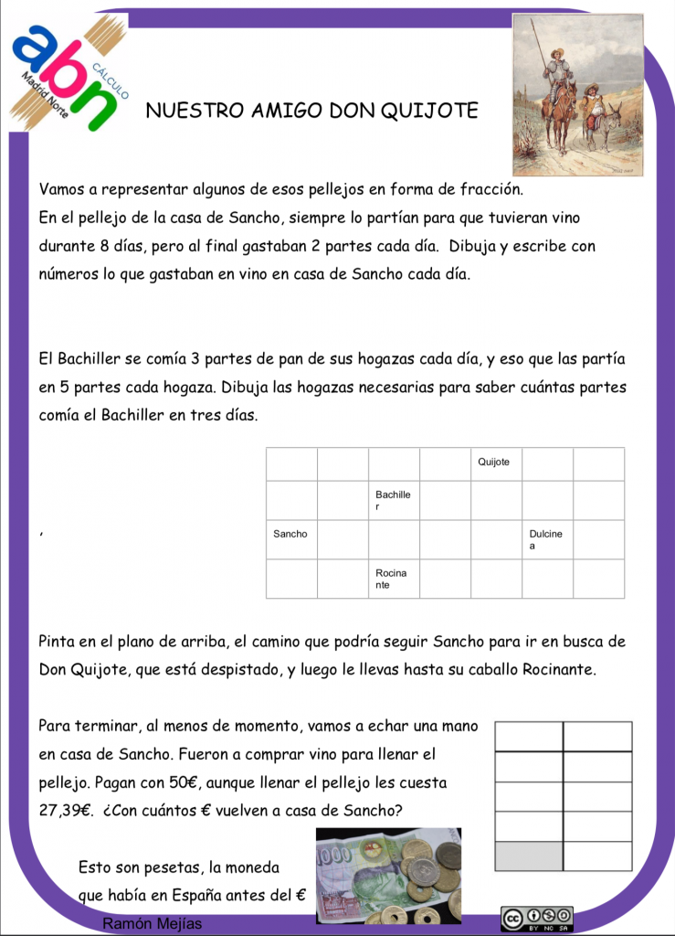 En esta propuesta se presentan algunas situaciones del Quijote con actividades que resolver. Para ello nos van proporcionando una serie de datos que nos ayudarán a reflexionar y realizar las operaciones oportunas para solucionarlas.