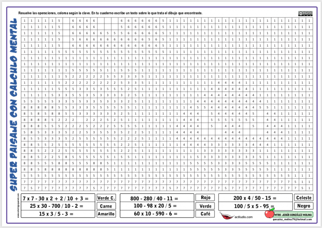 Como elemento motivador se trata de descubrir una imagen oculta que deberán sacar a la luz resolviendo las operaciones y pintando según los colores asignados a cada resultado
