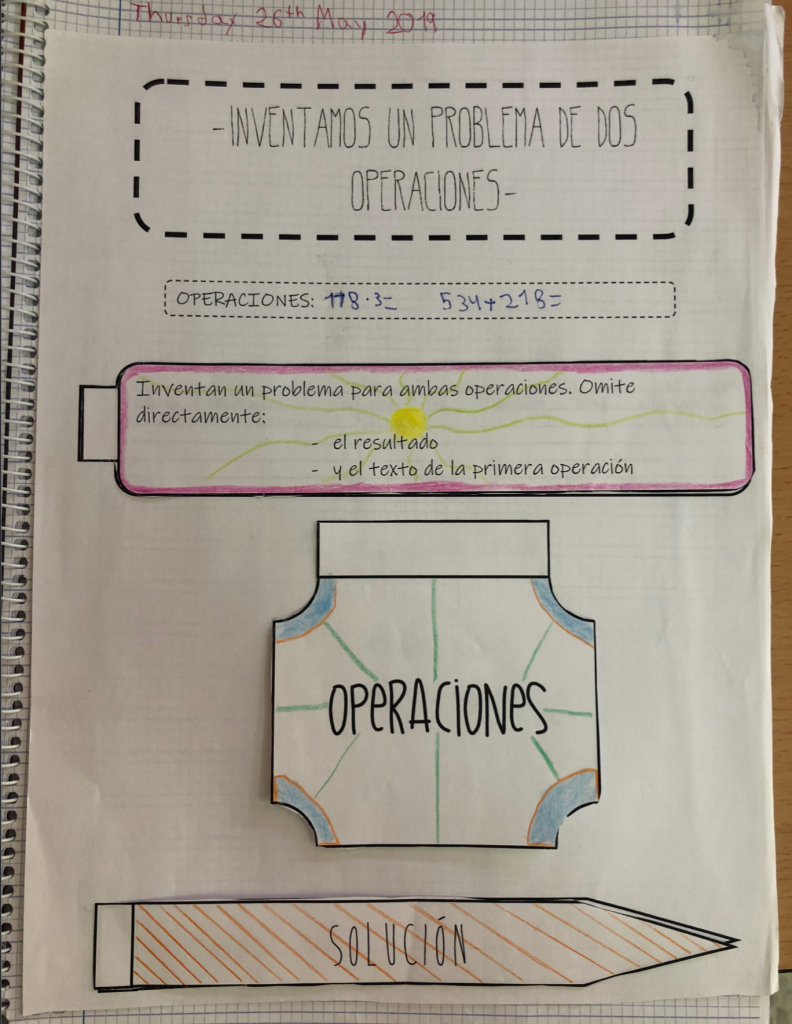 Para ello estamos realizando 4 fases. En esta tercera, que se presenta en este artículo, ya les aparecen directamente las dos operaciones y tienen que inventar un problema para ambas omitiendo dos elementos de los problemas: