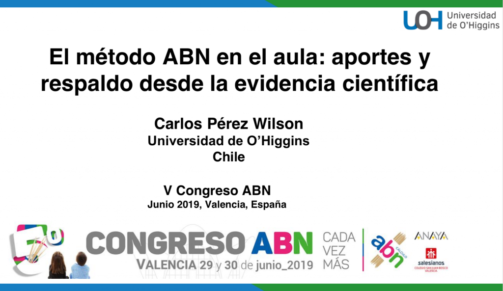 La conferencia inaugural del V Congreso ABN fue impartida por el Dr. D. Carlos E. Pérez Wilson, Catedrático de la Universidad O’Higgins de Chile y que trabaja el método ABN desde 2010.