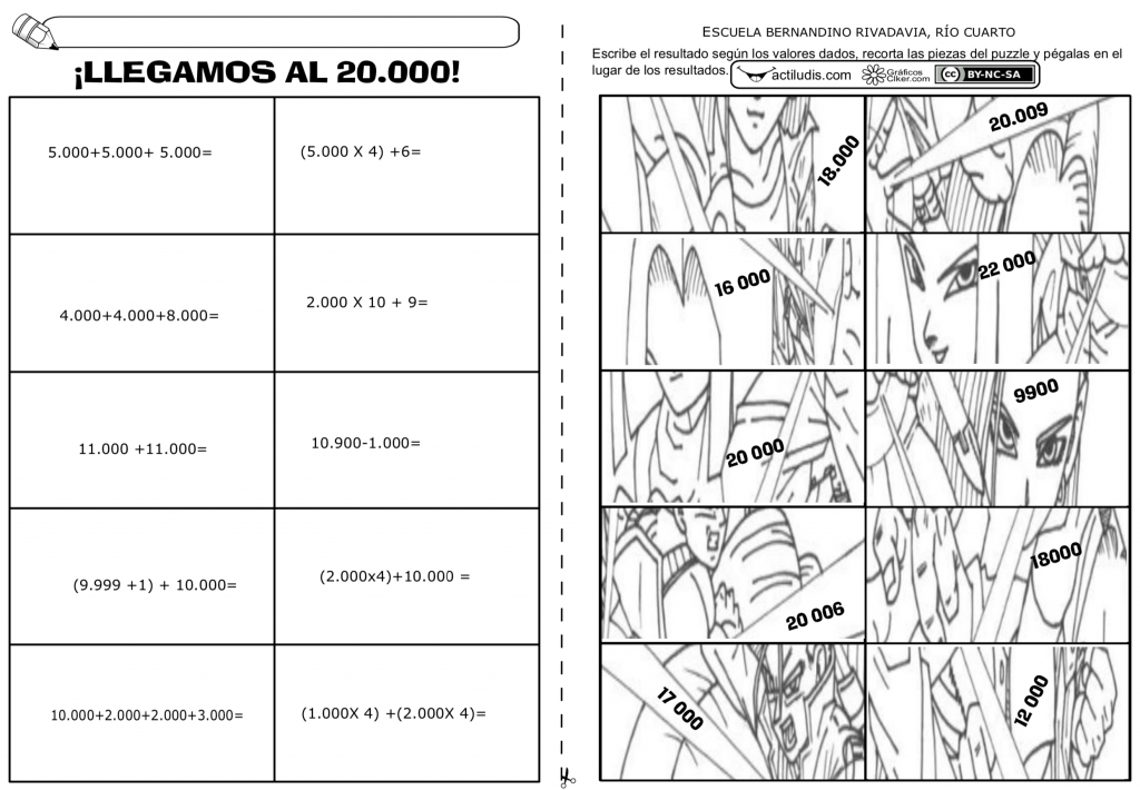 Todas las operaciones se pueden realizar mediante cálculo mental, por lo que no aparece en ninguna de ellas las rejillas ABN, auque si fuesen necesarias se pueden utilizar. Se trata de un puzzle que una vez realizado nos muestra unos personajes Manga.