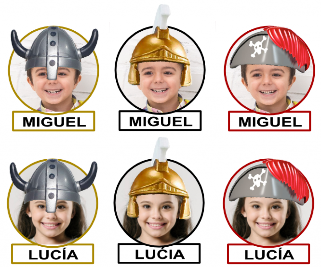 El logo disponible en este artículo es un modelo para poner en la camiseta del alumno, una vez plastificado y sujetando con un imperdible. En el fichero SVG que se comparte los elementos del diseño se pueden mover para permitir poner el casco en la fotografía, así como el nombre. Si no quieres poner su foto, también pueden dibujarse ellos mismos.