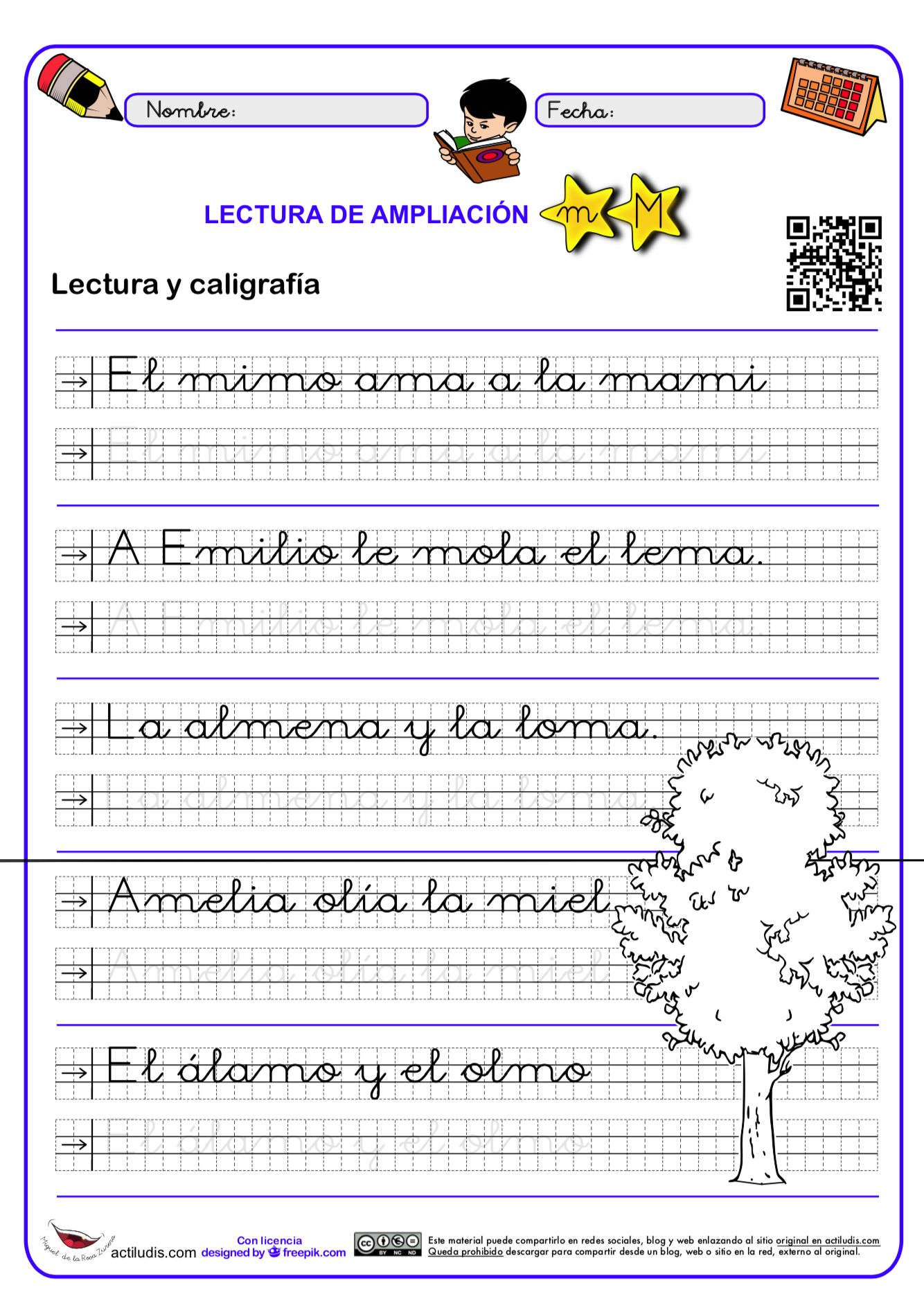 Lectura de ampliación con caligrafía de la letra «M»