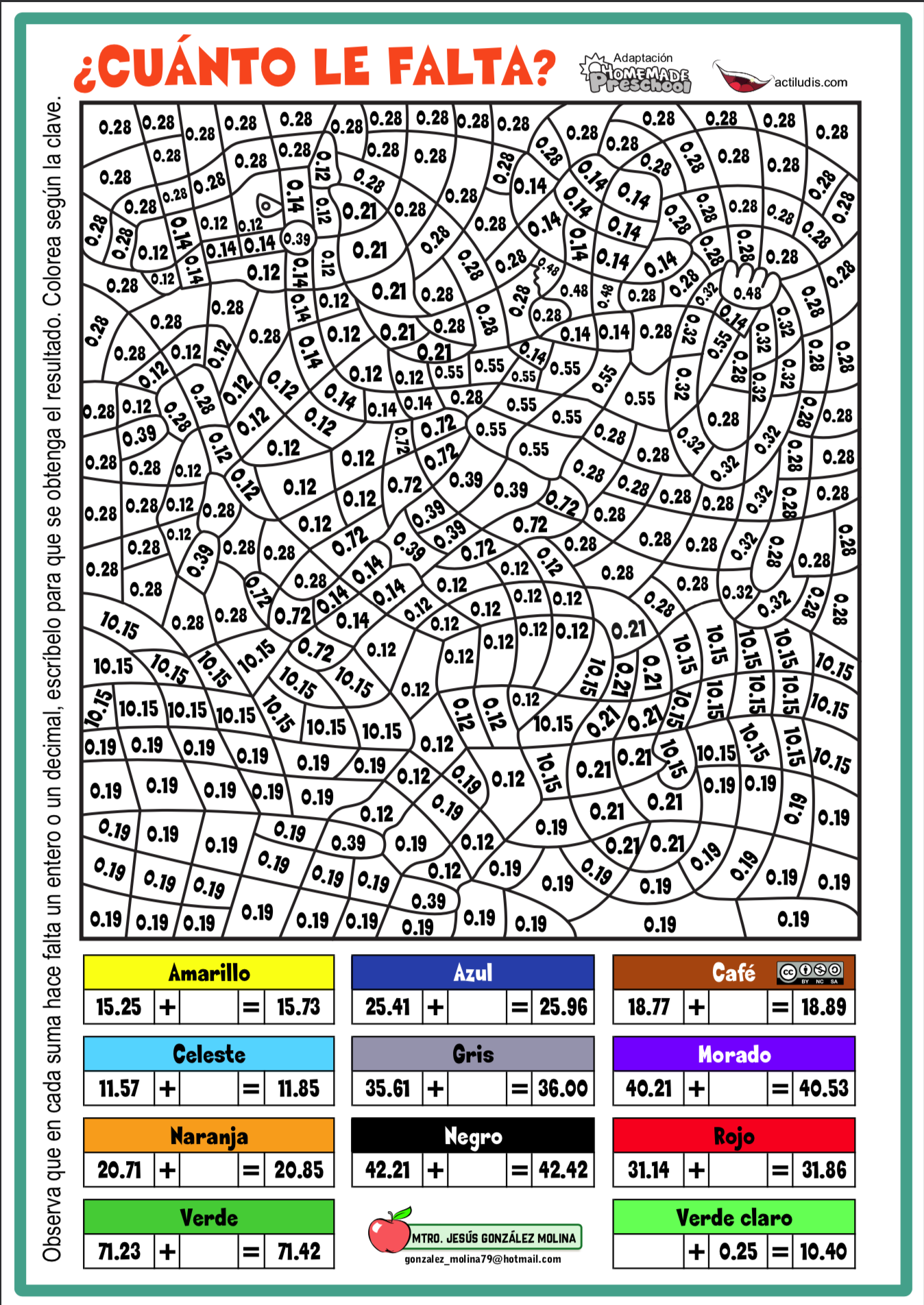 En la siguiente actividad que nos propone el profesor Jesús González Molina, el alumnado deberá encontrar el número entero o decimal que falta para obtener el resultado final.