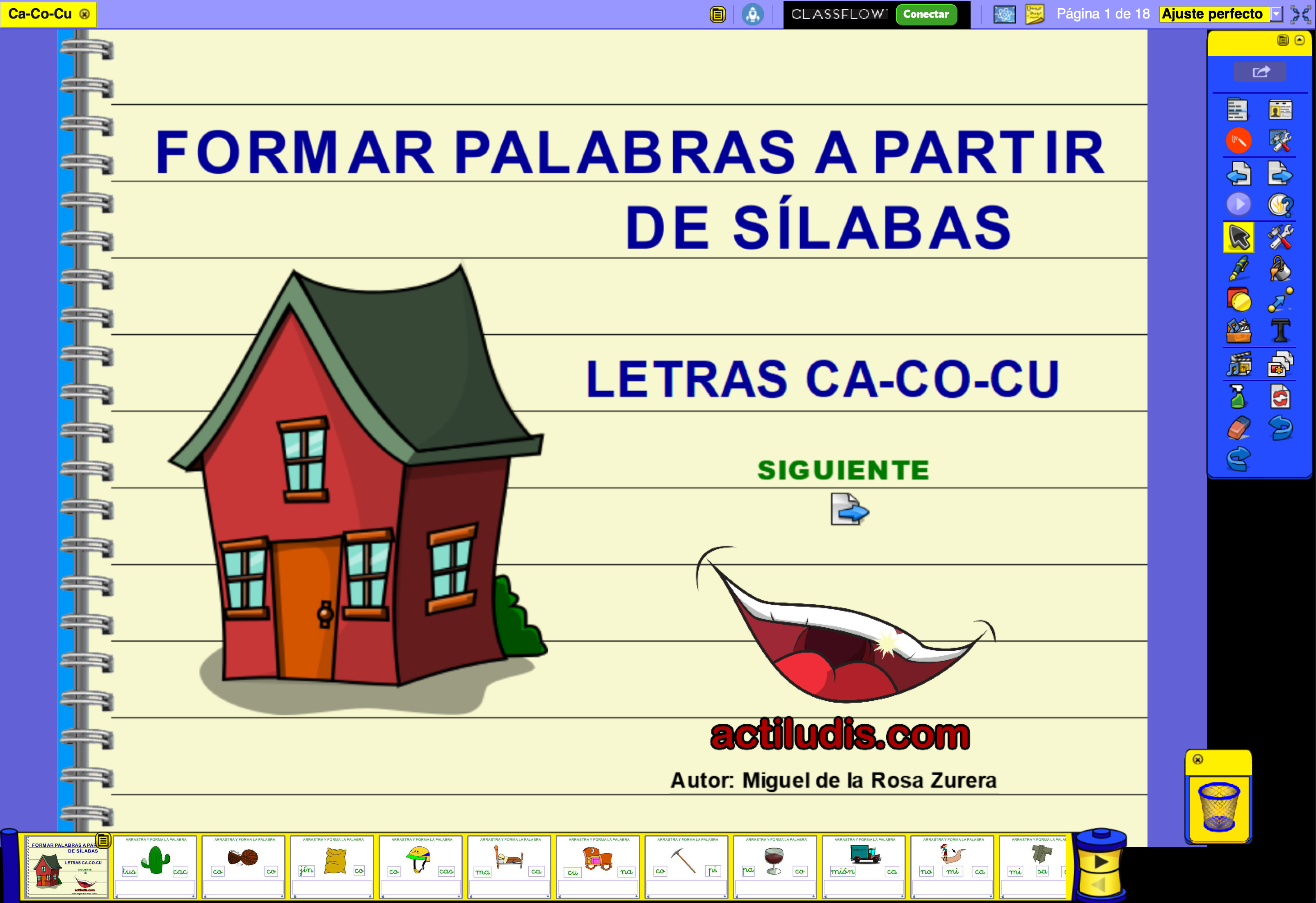 Ordenar sílabas para formar palabras con «Ca, Co, Cu» en la PDI