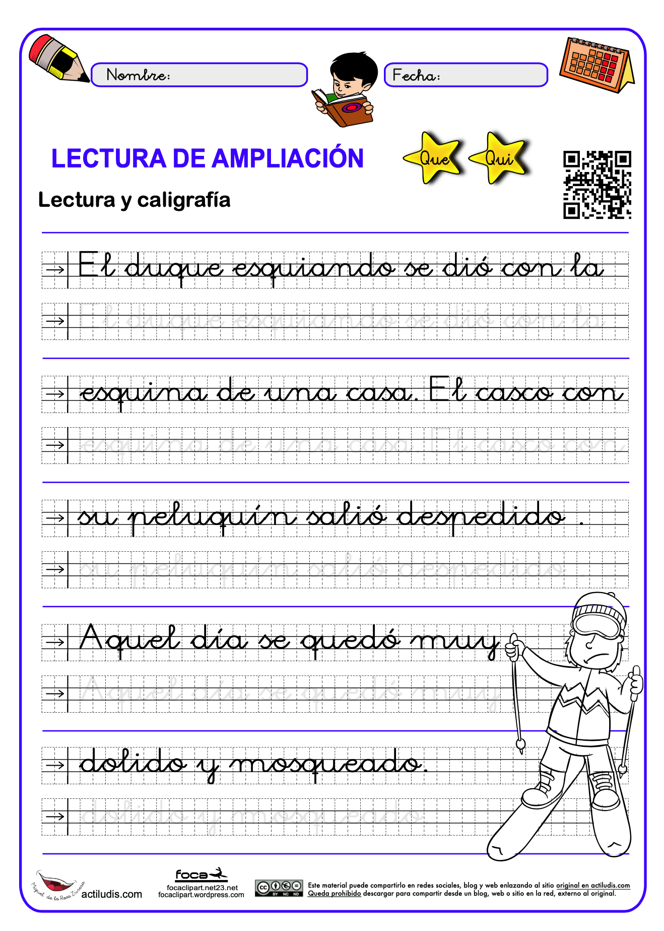 Lectura de ampliación con caligrafía sonido «Que, Qui»