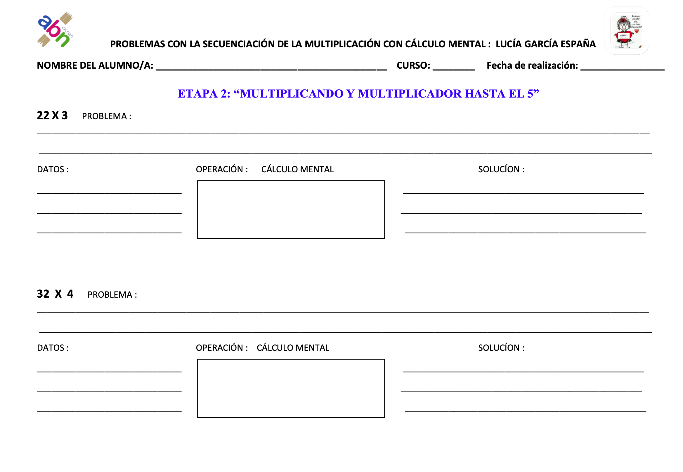 Lucía García España del CEIP «Gallego Burín» de Granada, comparte con nosotros unas fichas que ha creado para trabajar la graduación en la dificultad de los productos en el cálculo mental de la multiplicación, realizada por José Miguel de la Rosa y basada en los libros del método de su autor Jaime Martínez Montero. En esta ocasión Lucía la utiliza magistralmente para que podamos realizar la secuencia dentro de los problemas que estemos trabajando o queramos repasar.