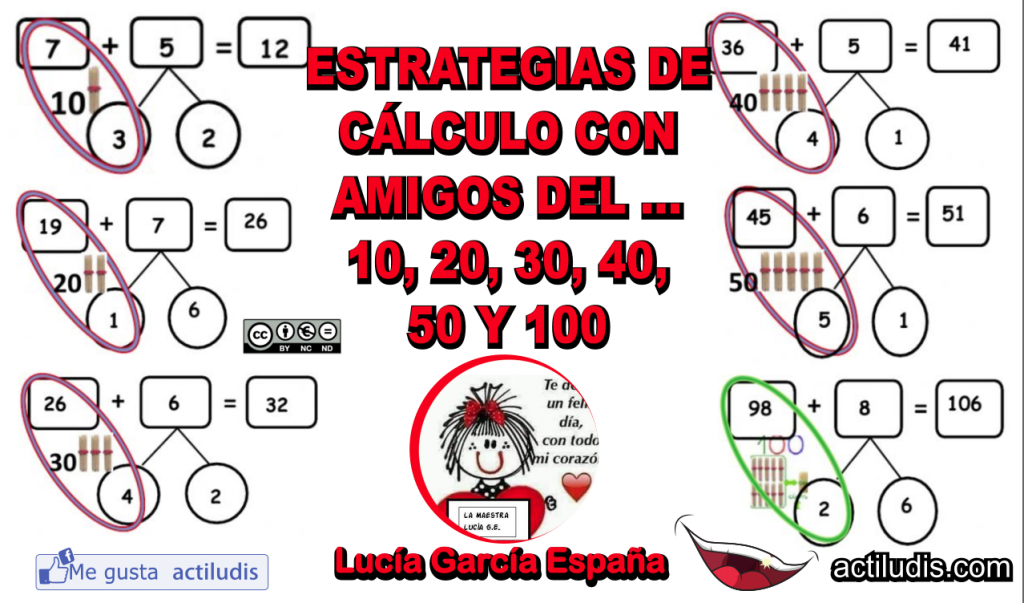 Lucía García España del CEIP «Gallego Burín» de Granada, comparte unas siete fichas consecutivas interactivas que ha elaborado para practicar el cálculo de la suma utilizando la estrategia de los amigos del 10, 20, 30, 40, 50 y 100 que podemos utilizar en 1º, 2º y 3º .
