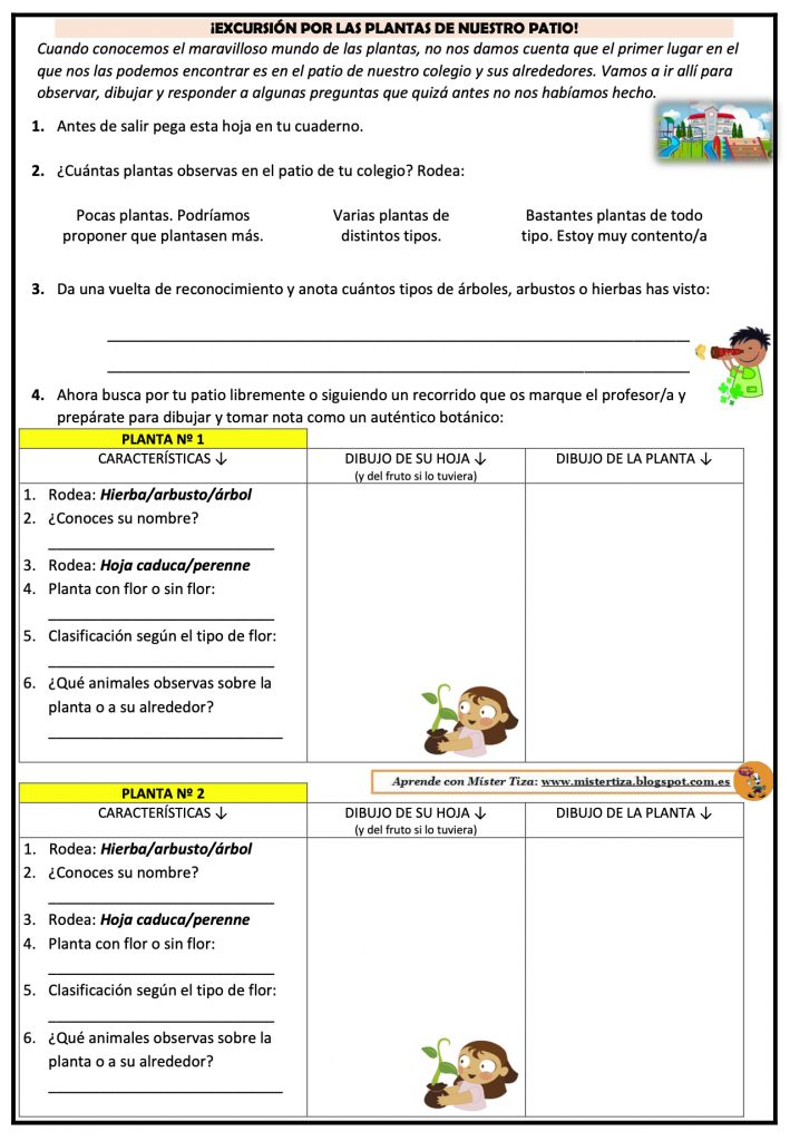 Con suerte, si tu patio dispone de variedad de plantas y árboles podrás disfrutar de esta actividad para repasar contenidos relacionados con el mundo de las plantas en Ciencias Naturales.