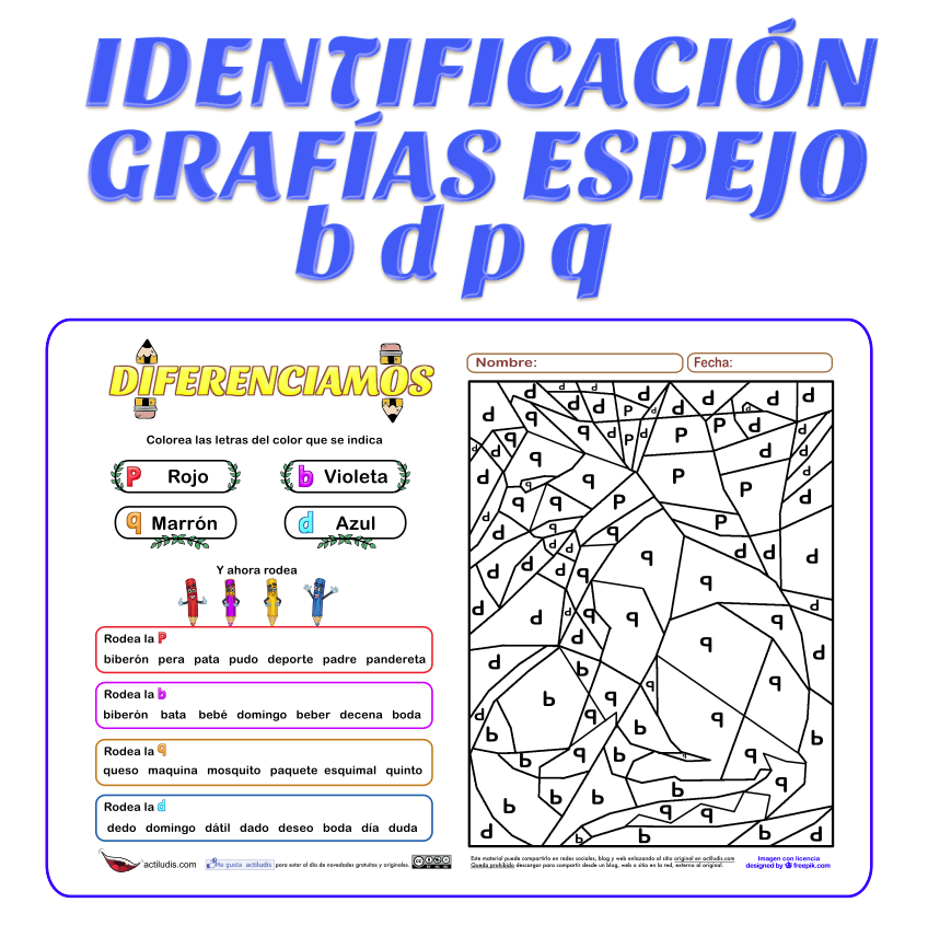 Para ayudar a diferenciar estas grafías he creado un juego de observación para descubrir un dibujo oculto, a través de estas cuatro letras. Además contiene una segunda actividad de lectura de palabras para localizarlas en cada de ellas.