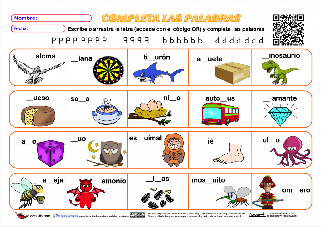Trabajamos la dislexia con las grafías b,d,p,q completando palabra