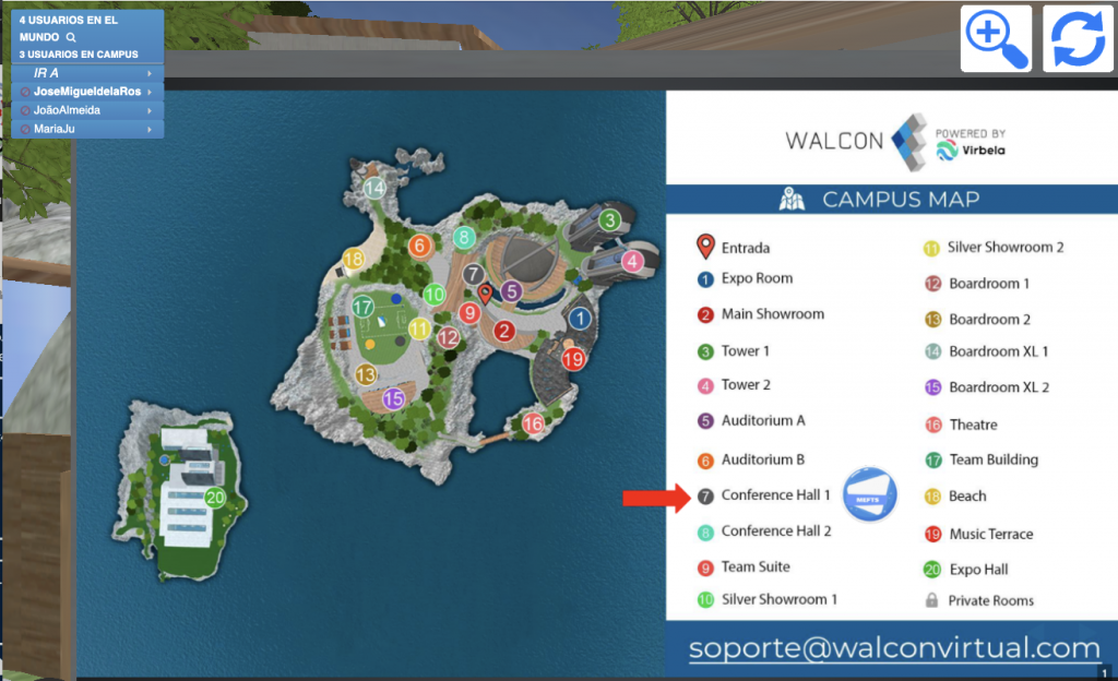 Una de las características de estas jornada es su desarrollo en formato «On line», y además dentro de un campus virtual, en el cual los diferentes participantes, a través de un avatar, se han podido mover libremente entre las diferentes propuestas de talleres. Un recurso que ha supuesto un reto organizativo, no exento de algunos fallos técnicos de los cuales aprender, y que ha supuesto una nueva experiencia, tanto para ponentes como asistentes.