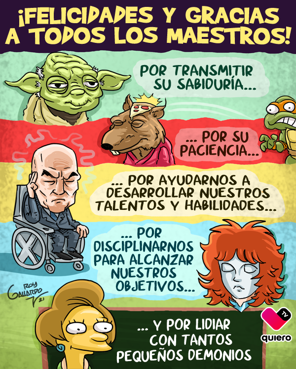 Hago esta breve reseña porque el dibujo Roy Gallardo ha realizado un homenaje que me ha resultado bonito y comparto desde el blog. Felicidades a todos los maestros y maestras de corazón que se desviven por un futuro mejor para su alumnado.