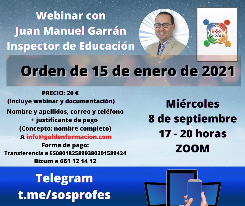 El próximo 8 de septiembre podrás conocer en profundidad la Orden de 15 de enero de 2021 que será la norma básica del próximo curso escolar. Son sólo 100 plazas!!!