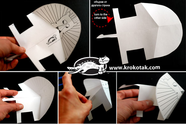 De Krokotak, blog dedicado a las manualidades un león muy fácil de recortar y montar. Os dejo el archivo y unas fotografías que ilustran cómo montarlo, aunque es muy intuitivo.