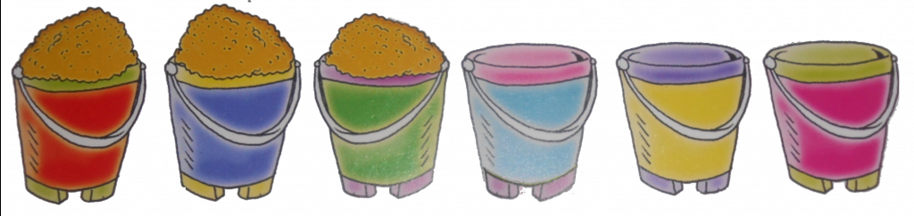 «María está jugando con la arena. Tiene seis cubos distintos, tres con arena y los otros tres están vacíos. Se acerca su amiga Ana y le dice: