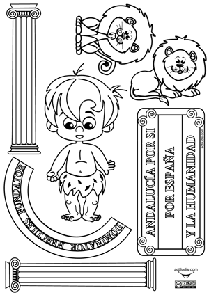 Inspirado en el escudo de Andalucía, os dejo un par de fichas desde una visión infantil del mismo. Una para colorear el escudo y otra para recortar, montar y colorear.