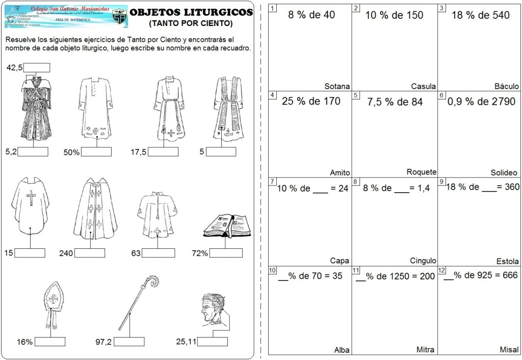 Cuatro fichas para trabajar los tantos por ciento o porcentajes, realizadas por Reynaldo Oswaldo Cartolín Rosado Profesor de Matemática – Física desde el Colegio San Antonio Marianistas del Callao, Lima (Perú).