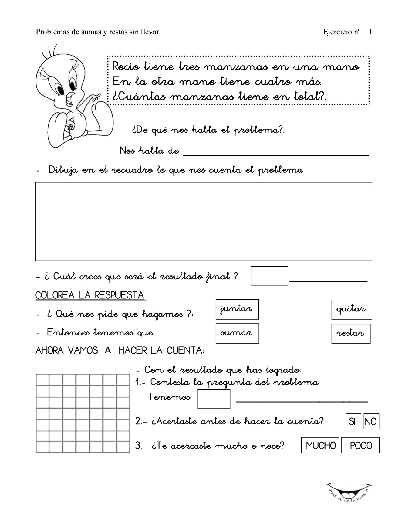 Tu estás aquí: Inicio › Problemas: Sumas y restas sin llevar › PROBLEMAS-DE-SUMAS-Y-RESTAS PROBLEMAS-DE-SUMAS-Y-RESTAS Deja una respuestaTu dirección de correo electrónico no será publicada. Los campos obligatorios están marcados con *Comentario * Nombre * Correo electrónico * Web Recibir un correo electrónico con cada nueva entrada. Δ