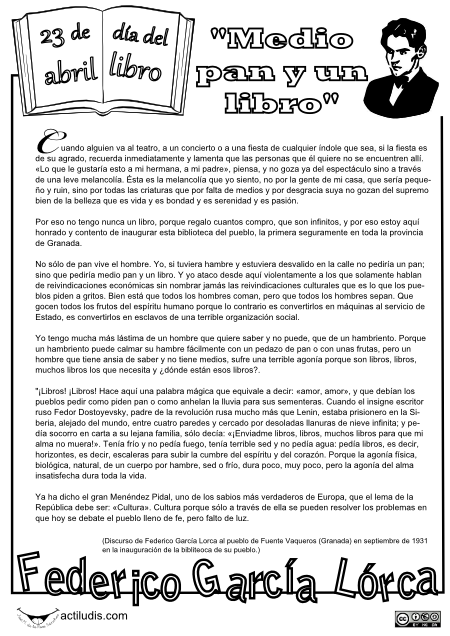 Medio pan y un libro. Discurso de Lorca en la inauguración de la biblioteca de su pueblo