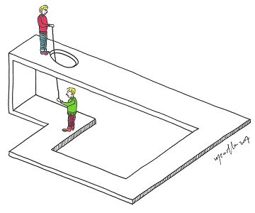 Muchas de las ilusiones ópticas de las que mostramos en el blog y que podéis encontrar en innumerables sitios, tienen adaptaciones más atractivas para los niños, haciéndolas muy apropiadas para trabajar conceptos geométricos a la búsqueda de lo que no es posible en la realidad.