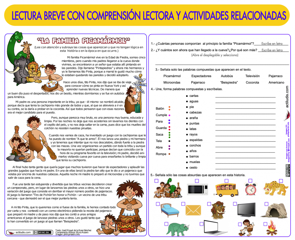 Texto: José Miguel de la Rosa Sánchez, Comprensión lectora: Silvia Asuero. Dibujos: Phillip Martín