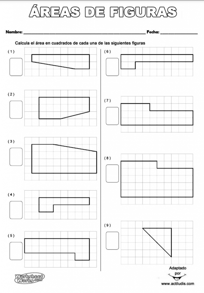 Sigue la misma línea de las actividades del artículos sobre áreas poligonales simples sólo que un poco más complicado ya que en esta ocasión además aparecen áreas de polígonos con ángulos distintos de 90º. Para descargar las fichas haz clic sobre el dibujo. La solución de las actividades la tienes al final del documento.