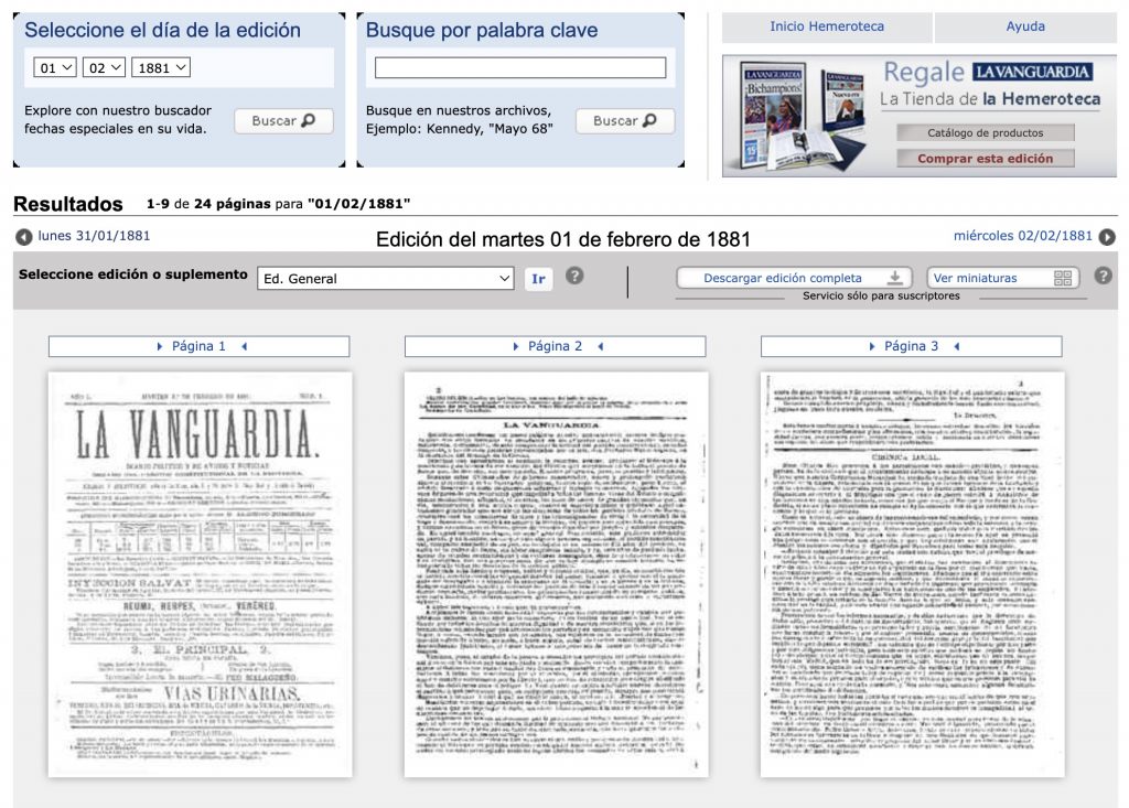 La maestra Che-cole Martín me envía un enlace al periódico «La Vanguardia«, el cual ha digitalizado su hemeroteca desde el año 1881 y puedes buscar el periódico del día en que naciste para conocer las noticias de ese día.