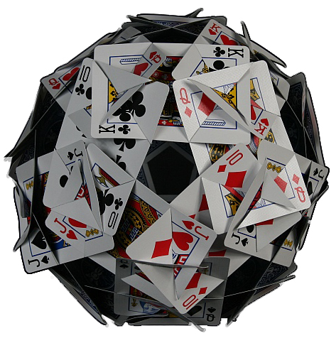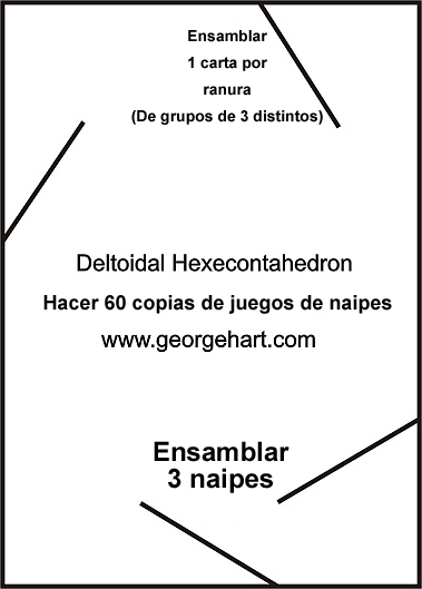 En la web del matemático George W. Hart encontré, entre sus muchas actividades, la construcción de unos «Hexecontaedros deltoidales» con naipes que pueden realizar los alumnos/as del 3er. Ciclo de Primaria o en la ESO.
