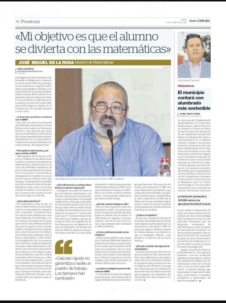 Hoy lunes 27 de junio en el diario «Córdoba» se publica una entrevista que me realizó Gema Albornoz, con motivo de la «I Escuela de Verano», para docentes y familias, que se desarrollará del 6 al 9 de julio en Aguilar de la Frontera (Córdoba).