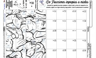Juego de puzzle para pasar de fracción impropia a fracción mixta. Consiste en que el alumnado resuelva en su cuaderno cada una de las fracciones impropias que aparecen en las celdas. Una vez hechas todas se recortan las piezas y se van colocando en su lugar correspondiente, con lo que … Sigue leyendo De fracción impropia a fracción decimal