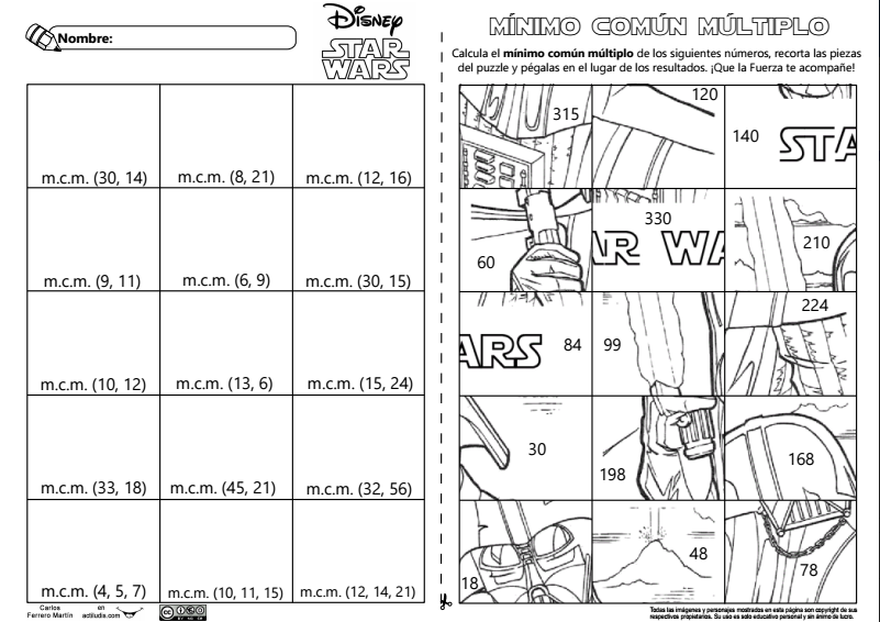 Cálculo del M.C.M. en un puzle con Darth Vader
