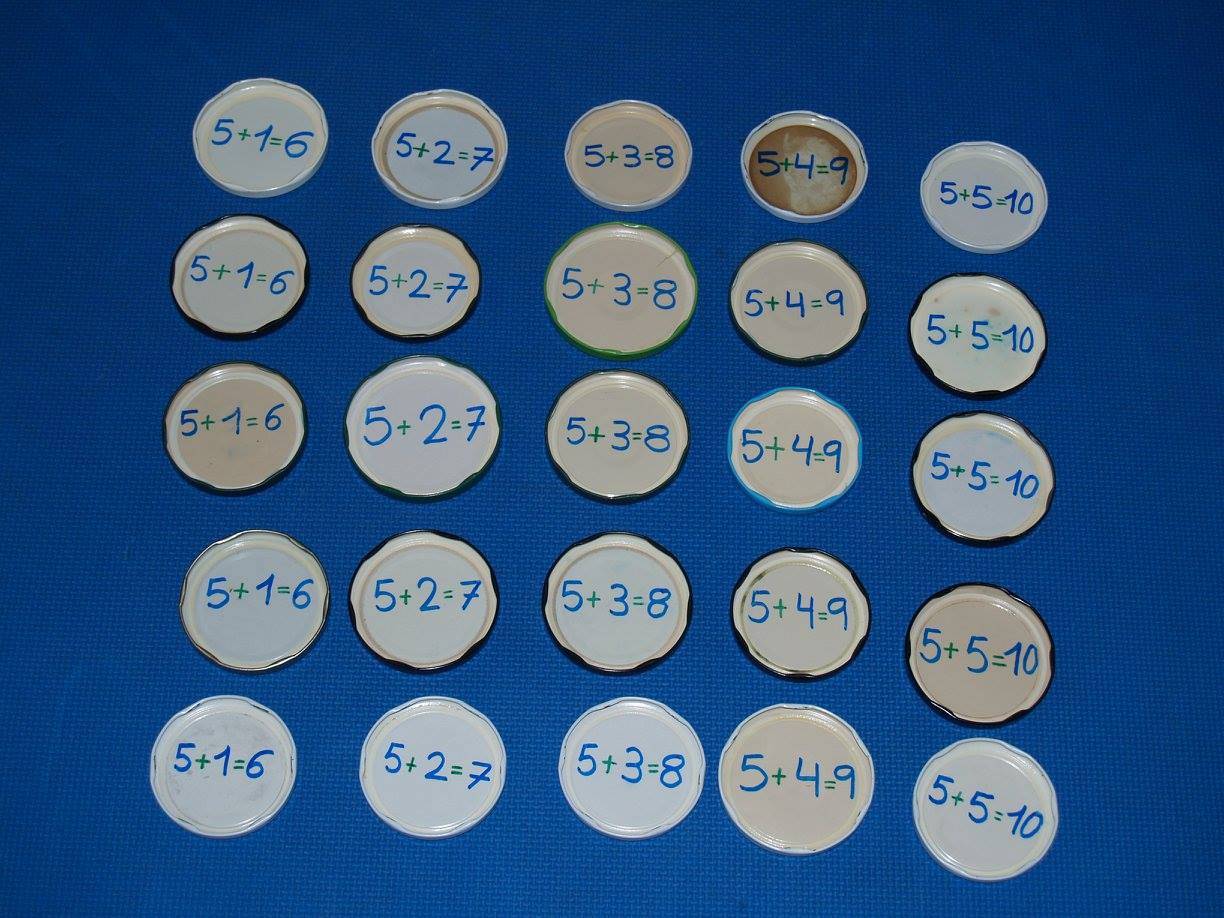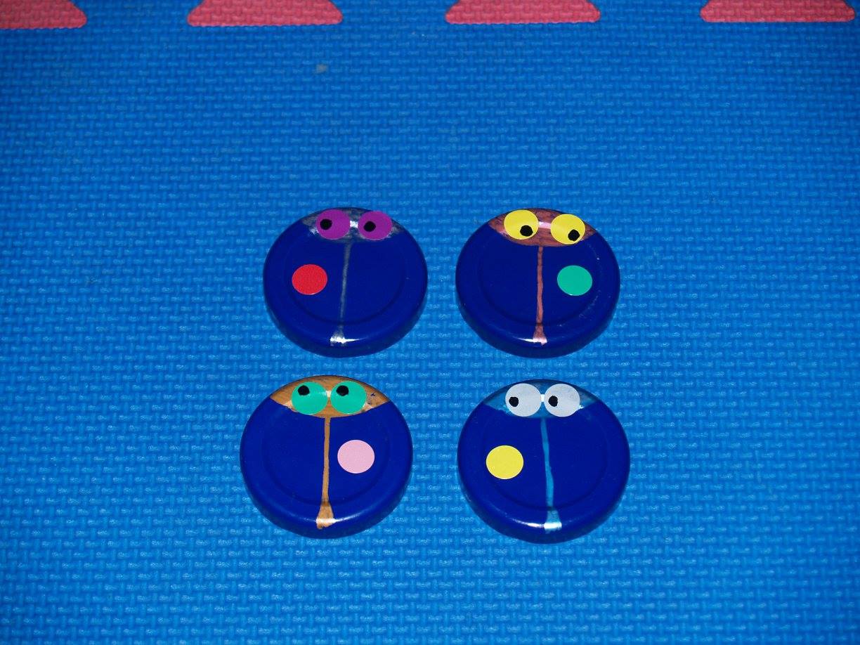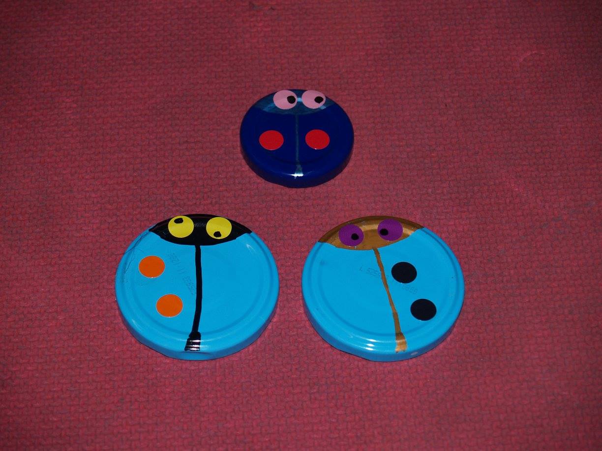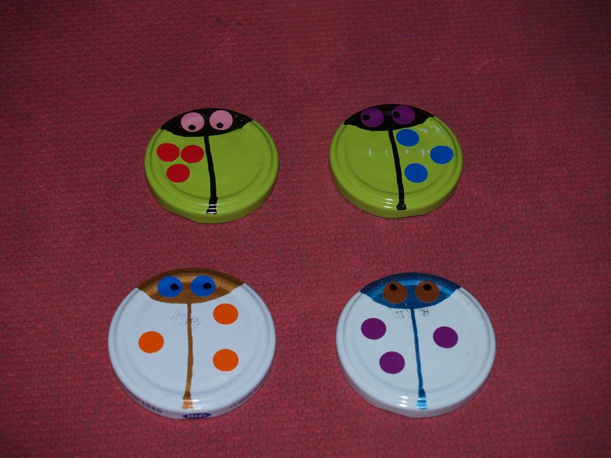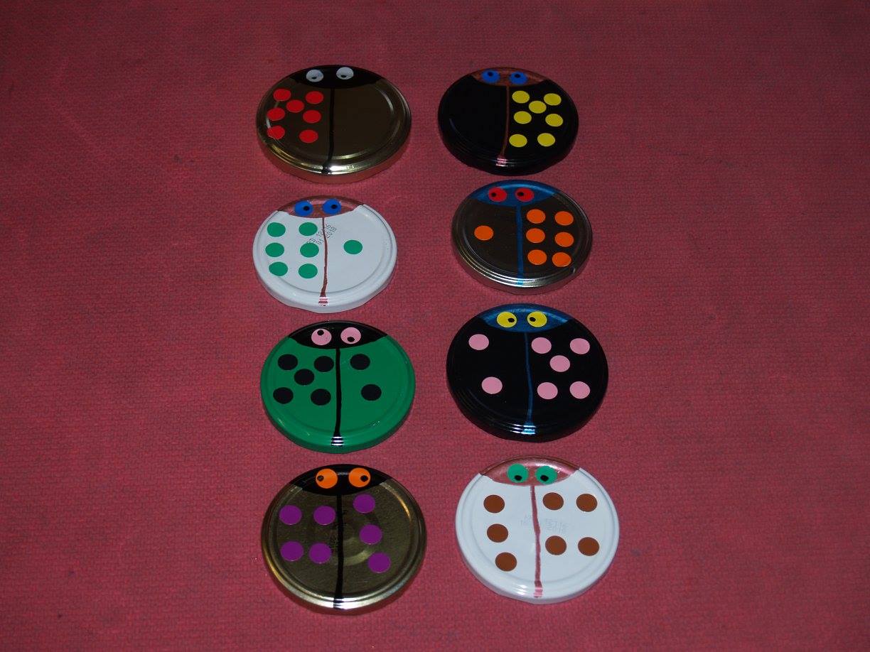 Conchi Bonilla Arenas del CEIP Sagrado Corazón de Getafe (Madrid) ha publicado en el Facebook ABN una estupenda máquina didáctica para superar la Fase 1 de la suma, además de utilizar los deditos hasta la saciedad, ha ideado estas mariquitas que a los niños les están encantando. Están hechas con las tapas lisas de los botes de conservas, rotuladores para objetos metálicos de la marca Giotto y gomets de colores, desde ahí la imaginación y el arte están servidos y nos asegura que ella arte tiene poco, lo más básico (Pero yo creo que lo suple con mucha imaginación y creatividad). La comprobación del resultado está por detrás de la tapa.