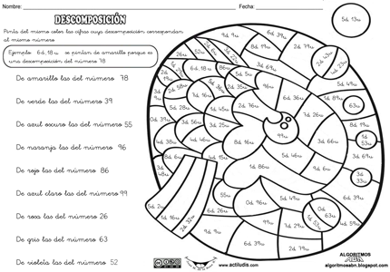Para trabajar este tipo de composición hemos creado una ficha con números de dos cifras y poco a poco iremos complicando los ejercicios al objeto de que dominen su descomposición.