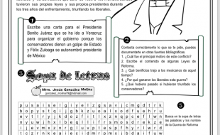 A través de una sopa de letras en la que deben buscar palabras relacionadas con los hechos ocurridos durante la guerra de Reforma y sus protagonistas, en la que el presidente Juárez incorporó varias leyes a la Constitución de 1857 que son de la mayor importancia para la vida del país … Sigue leyendo Guerra de Reforma