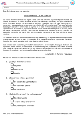 Erick Samuel Valdivieso Coloma,Profesor y Capacitador TIC AC, Moquegua (Perú), nos envía cuentos con actividades de comprensión, para 2º de Primaria y alumnado con dificultades de comprensión lectora.