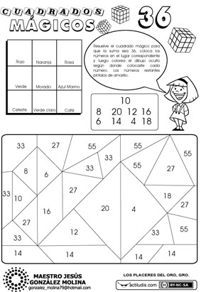 y luego colorea el dibujo oculto según donde colocaste cada número. Autor: Jesús González Molina Esc. Primaria “Vicente Guerrero” de Los Placeres del Oro, Guerrero, México.