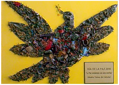 Os dejamos una idea para el día escolar de la «No-Violencia y la Paz». Se trata de un trabajo que realizó, en el curso del 2009, la maestra Enriqueta Feria Ager (Keti) del “CEIP Torre del Castillo” de Monturque (Córdoba). Se trata de una paloma la cual está formada con los juguetes bélicos que el alumnado del colegio llevaron para montarla (pistolas, tanques, cañones, soldados de plástico de distintos tipos,….).