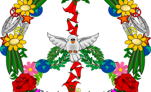 Inspirándome en un símbolo que encontré en internet he creado el símbolo de la Paz con dibujos relacionados con las Paz: paloma, el mundo, manos estrechándose, flores, hojas de olivo, símbolo de la paz, estrellas, corazones,… todo muy al estilo de los años 60.