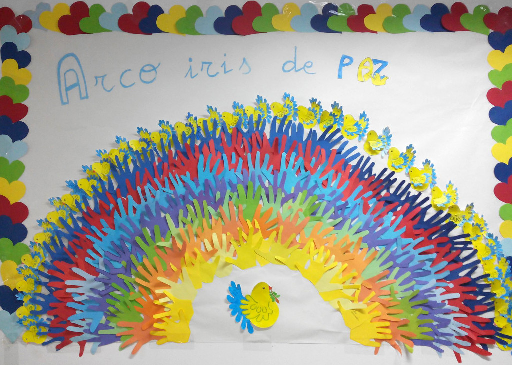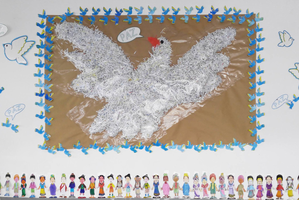 Mi compañera, hace ya unos pocos años, en el CEIP «Torre del Castillo» de Monturque, Enriqueta Feria Ager (Keti) me remite los murales que ha preparado éste año con sus alumnos de 2º. Destaco el de la gran paloma rellena con tiras finas de papel, que da un efecto muy bonito.