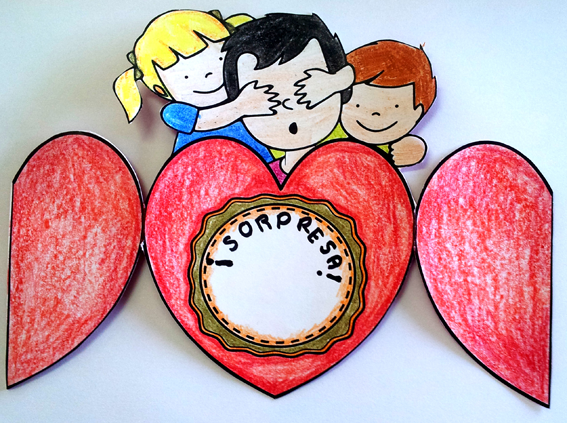 2.- Pega en la parte posterior de la ficha y con el lado rojo brillante hacia fuera, la cartulina.