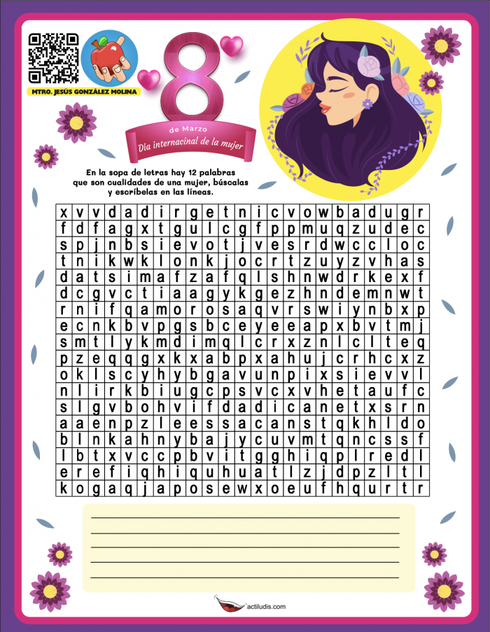 Tu estás aquí: Inicio › Sopa de letras para el día 8 de marzo, día de la mujer trabajadora › Sopa-de-letras-dia-de-la-mujer Sopa-de-letras-dia-de-la-mujer Deja una respuestaTu dirección de correo electrónico no será publicada. Los campos obligatorios están marcados con *Comentario * Nombre * Correo electrónico * Web Recibir un correo electrónico con cada nueva entrada. Δ