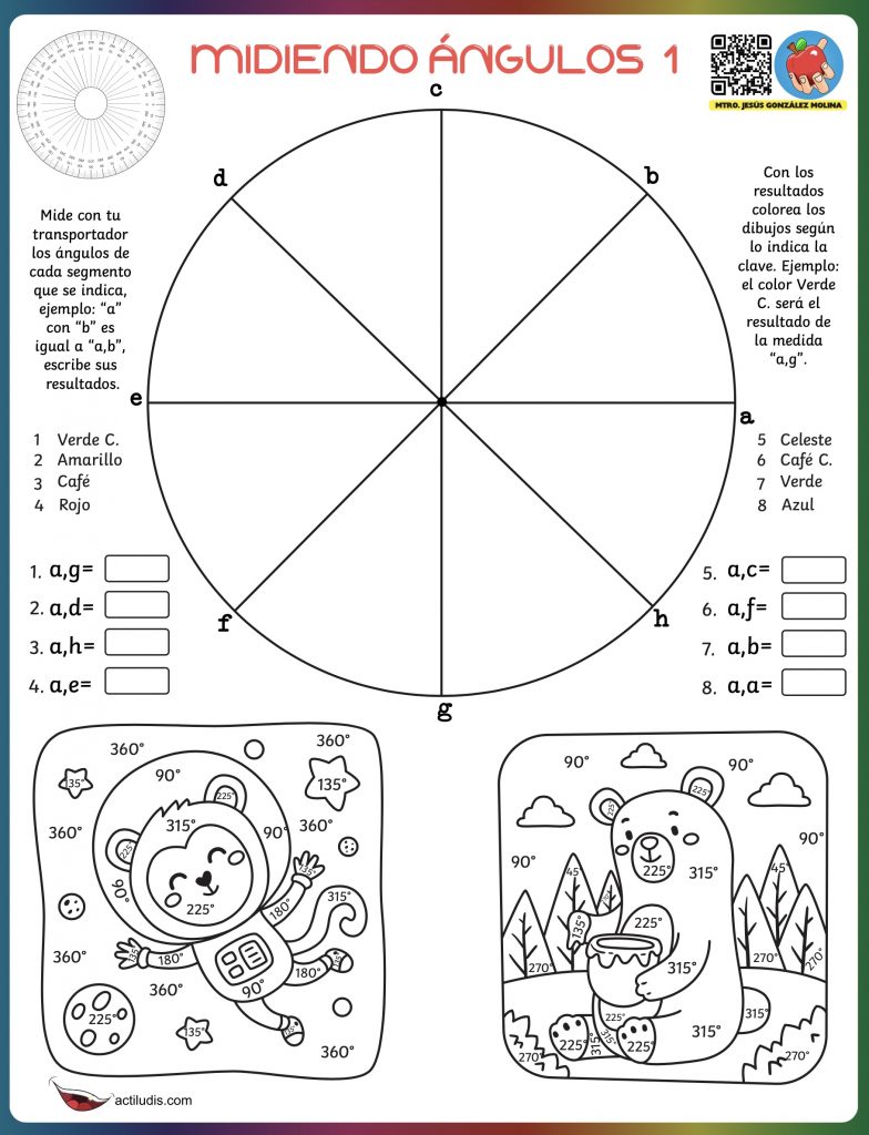 Con los resultados deberán colorear los dibujos según lo indica la clave. Ejemplo: el color Verde C. será el resultado de la medida “a,g” y así con el resto