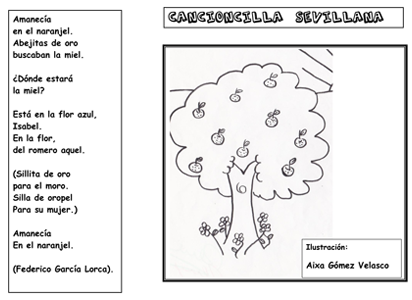 Trabajo realizado por Remedios Torres Fernández del CEIP Capitulaciones de Santa Fé (Granada) a partir del poema lorquiano con ilustraciones, de Aixa Gómez Velasco, que recrean la poesía, recitados (inluido uno de Góngora), audiciones de George Crumb, canciones con partituras («Cancioncilla Sevillana» y «A la flor del romero»), actividades de plástica, juego para el patio del recreo por Isabel Acosta y ficha en inglés traducida por George Crumb.