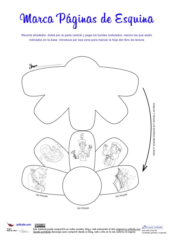 A partir de los cinco marcapáginas elaborados para el día del libro 2023 por Pablo de la Rosa Zurera para uso gratuito (ver condiciones de la licencia en «Uso y licencias de imágenes», hemos creado un marcapaginas para meter en la esquina del libro y marcar la hoja de lectura.