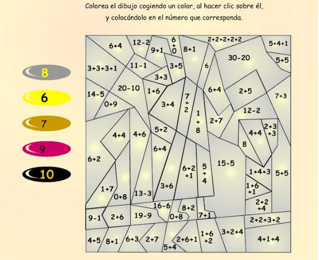 Rosa Piera compañera del CEIP Vicente «Blasco Ibañez» de Alzira (Valencia), ha recopilado en un artículo de su blog «Exploradors de Primer» una serie de aplicaciones interactivas para el alumnado de Primero de Primaria (otros también disfrutarán en ellos) que permiten pintar cada espacio del color que le indica el resultado de la operación que hay dentro de el, o realizando las actividad numérica que les propone y obteniendo así un dibujo oculto o simplemente coloreando la imagen que se muestra.